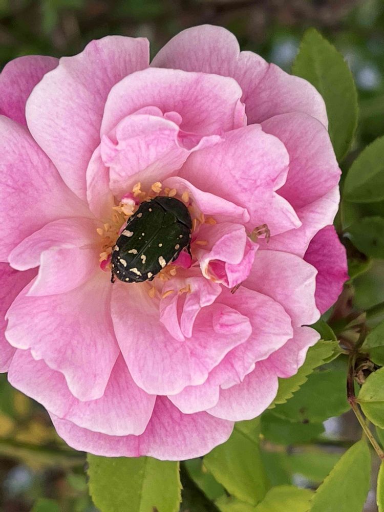 キレイなバラに釣られてハナムグリもやって来たんでしょうね💦
