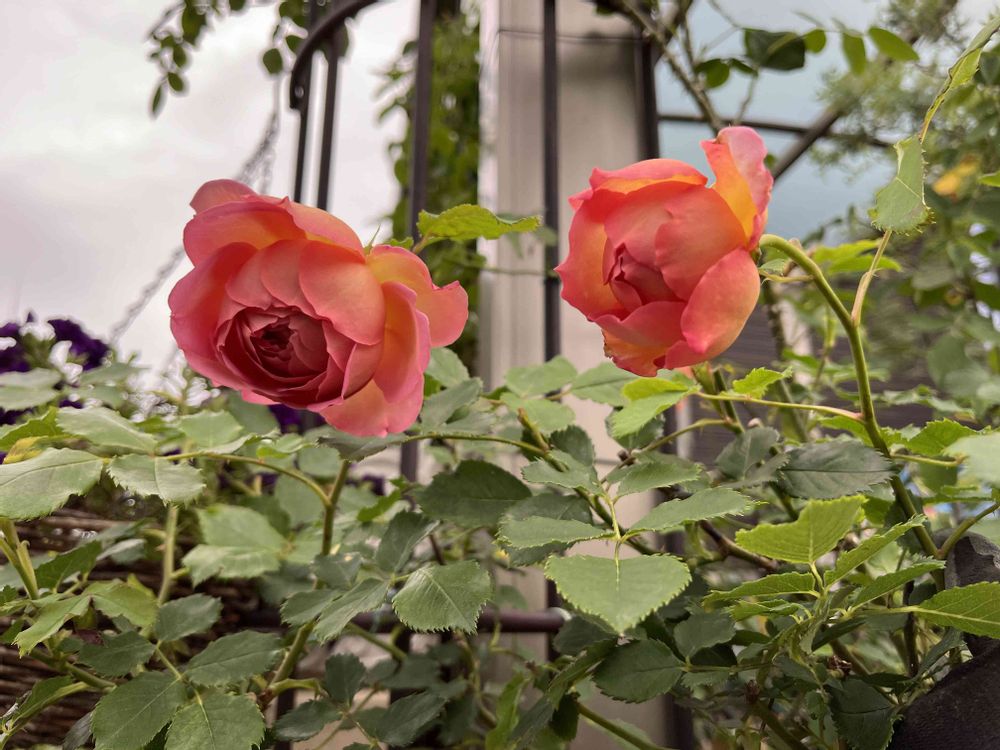 ①ジュビリーセレブレーション🌹エリザベス女王の在位50周年のお祝いのバラです👑華やかなゴールドが混ざります˚✧₊⁎②モリニュー🌹大きくなり過ぎないコンパクトなER③サイラスマーナー🌹好きなバラですがちょっと開き過ぎましたね