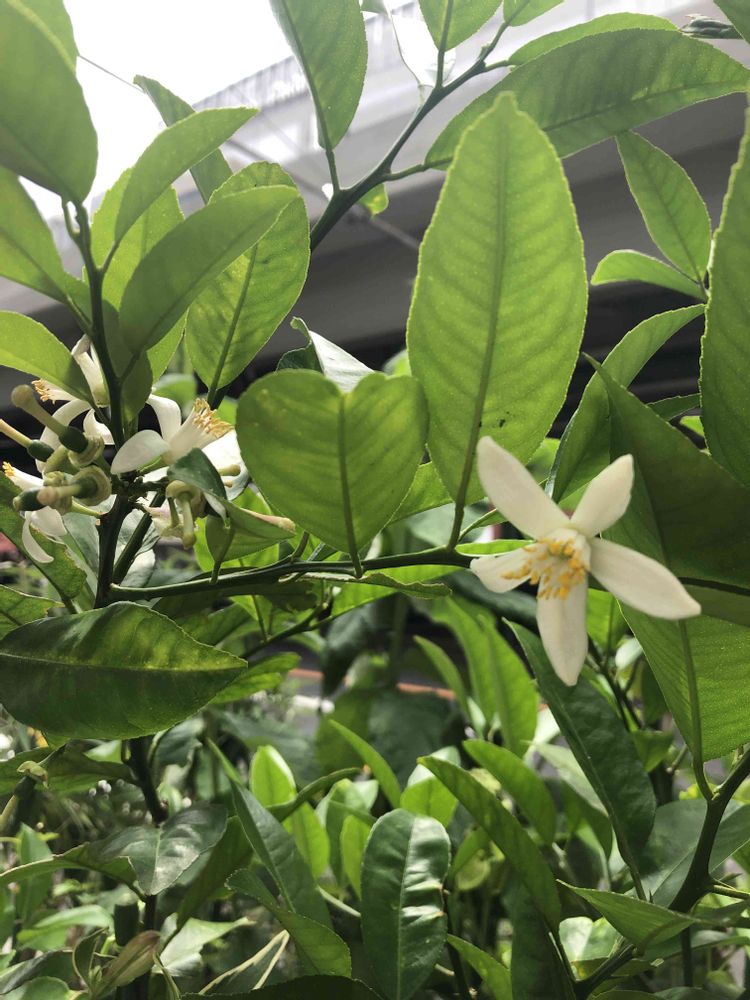 蜜柑の木に花が咲いてアゲハの幼虫🐛がついてました。夏。