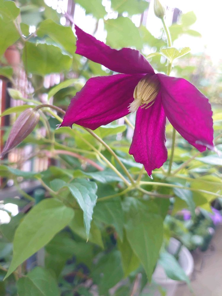 クレマチス第1号が咲きましたヽ(=´▽`=)ノ💜最初に咲いたのはミケリテさんでした😊💞