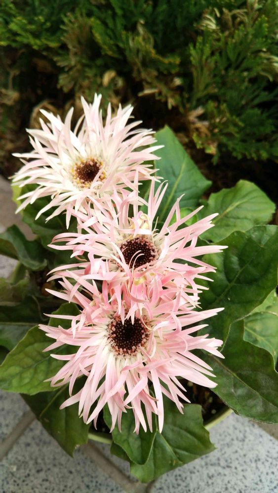 以前アップした白いガーベラがピンク色に変わって再度さいてくれました。