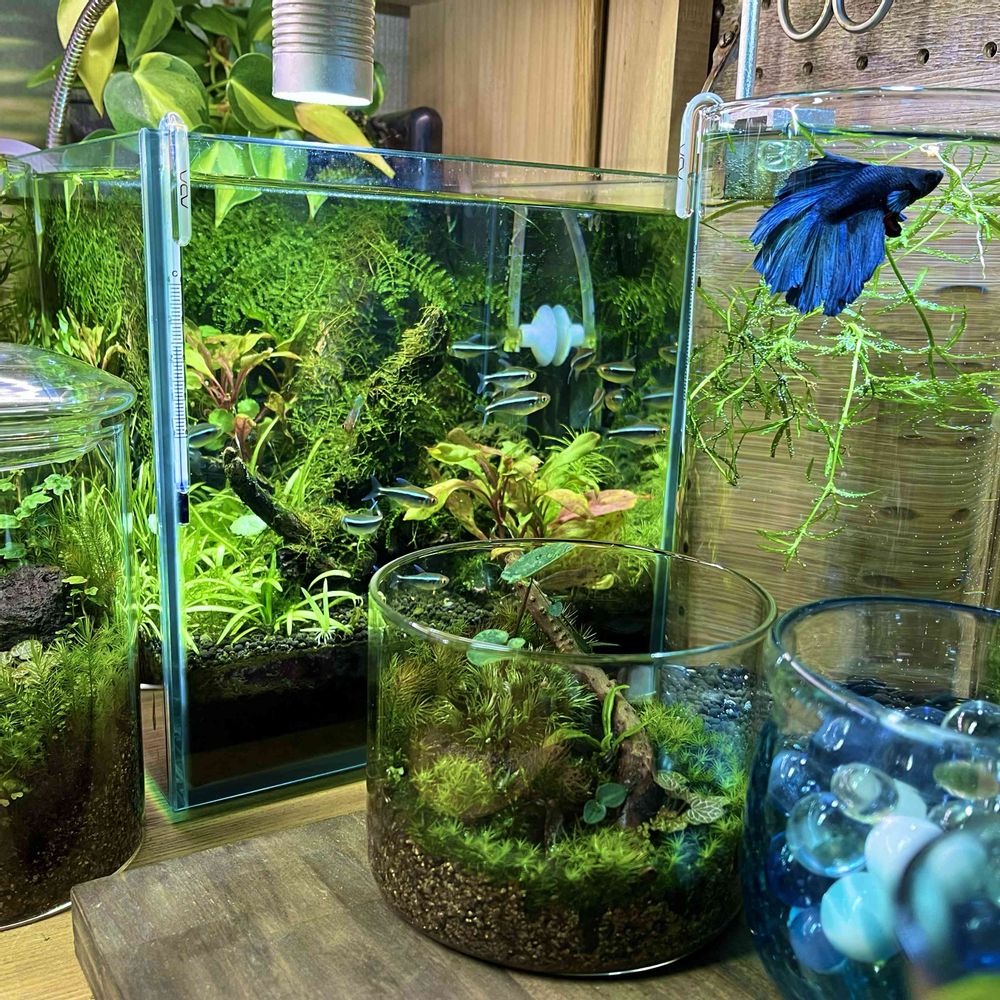 水草やモス系がすぐ伸びるので、小さなアクアリウムは維持管理大変ですよね。