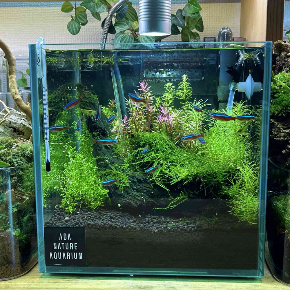 おっしゃる通りカージナルテトラとブラックネオンテトラです。20cm CUBE水槽と小さいので余計に大変ですが、何とか維持しています。水漏れした水槽はコケテラリウムにしましたよ。パルダリウムもしているので、よかったら過去の投稿もご覧くださいね😜✨