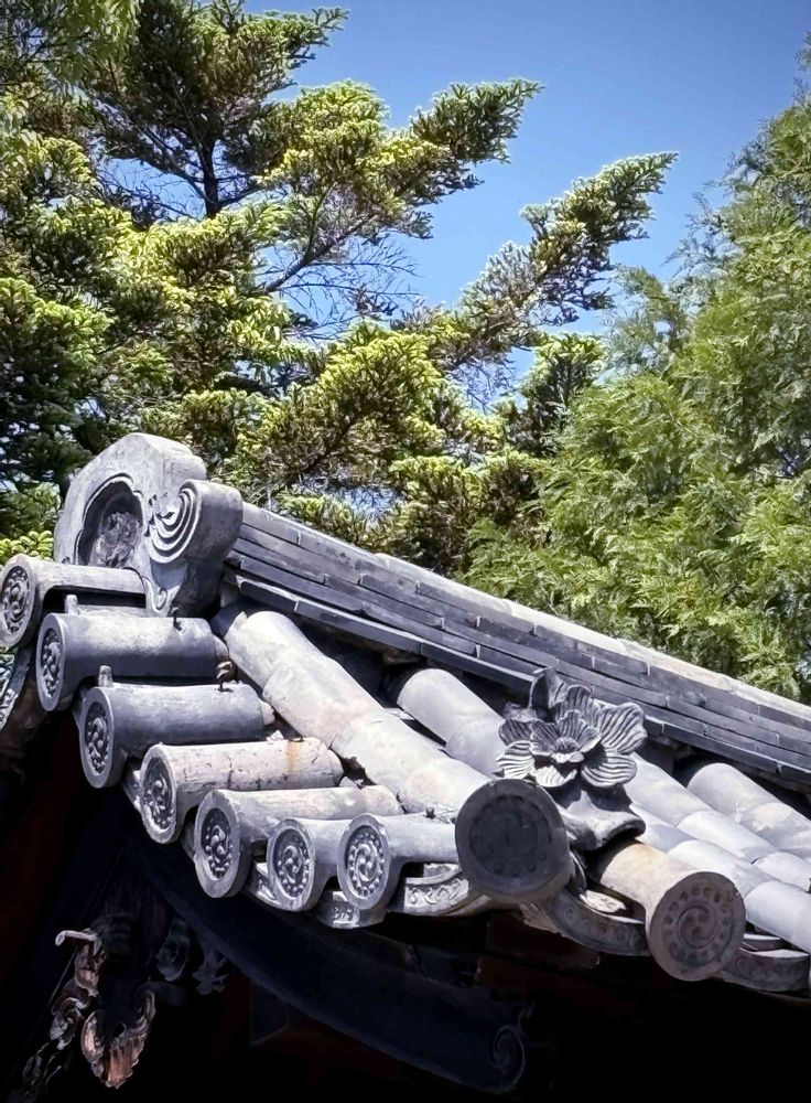 ソフィーさんの平和な日々を願い,寺の緑*青い空,装飾瓦*椿の投稿画像