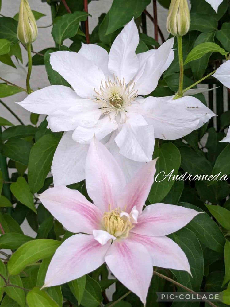 2年生の『アンドロメダ🤍🩷』 今年はとても元気いっぱいで 他のクレマチスを 圧倒させています