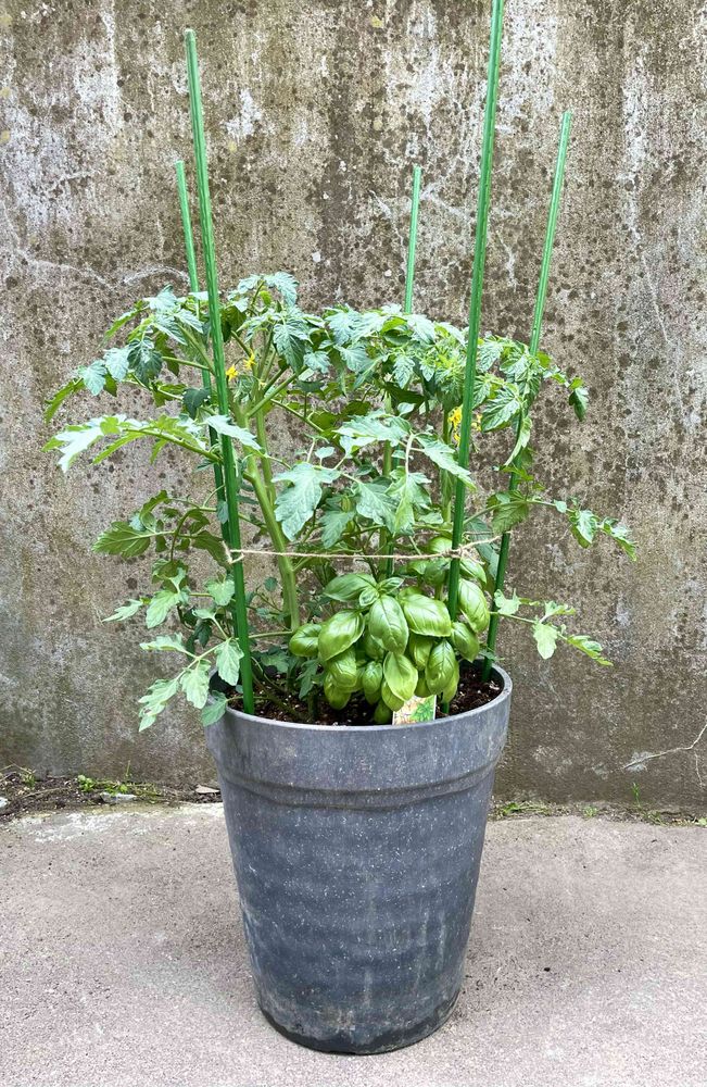 先日駅前のお花屋さんで4pot350円で購入したプチトマトの苗が急激に大きくなってきたので支柱を立ててやりました︎👍🏻 ̖́-