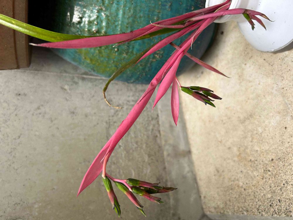 不思議な形態。でも変わってるからまたステキ💓。ヨウラクツツアナナスなんて。ボケ防止になりますように。有難う御座います。