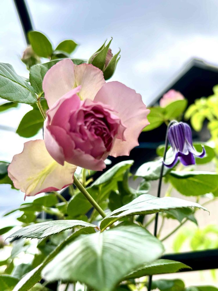 ☔️☁️🌪️🌀東南強風止めて‼️😱恐怖〜風速15m?の今日の庭😂薔薇首ぐるぐる鉢倒れ助けて💦漸くクレマチスと薔薇のコラボ実現しそうなのに😆