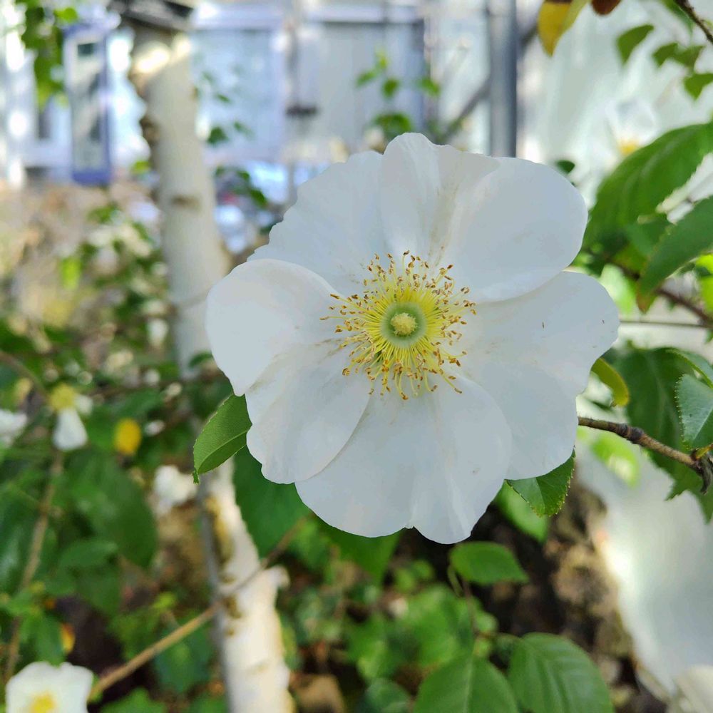 温室に…ナニワイバラ…が…そして…サボテンの花真っ白…にはびっくり〜