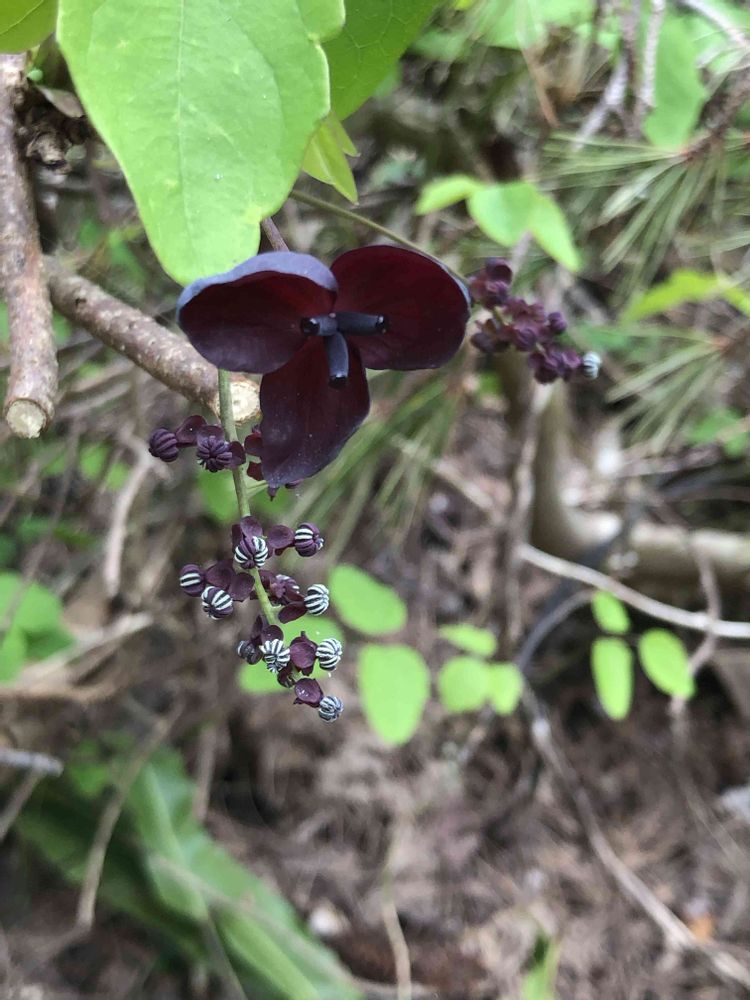 小さな小さな白い花とアケビの赤ワイン色した花アケビのツルの新芽は食べれるんですよね以前たくさん頂いた事がありました。