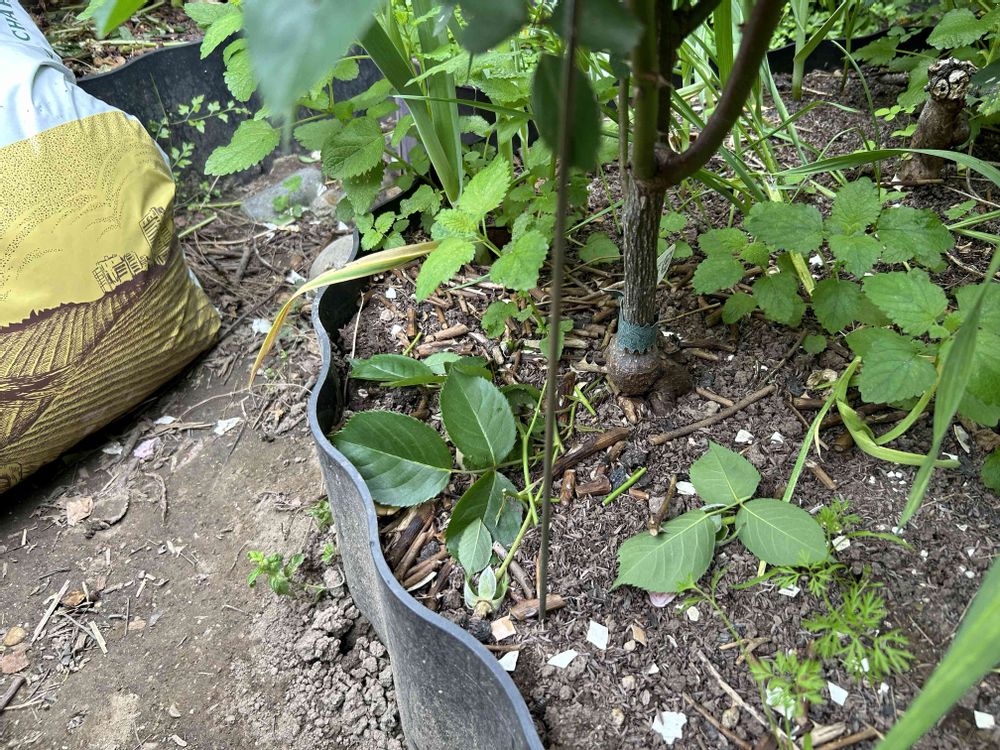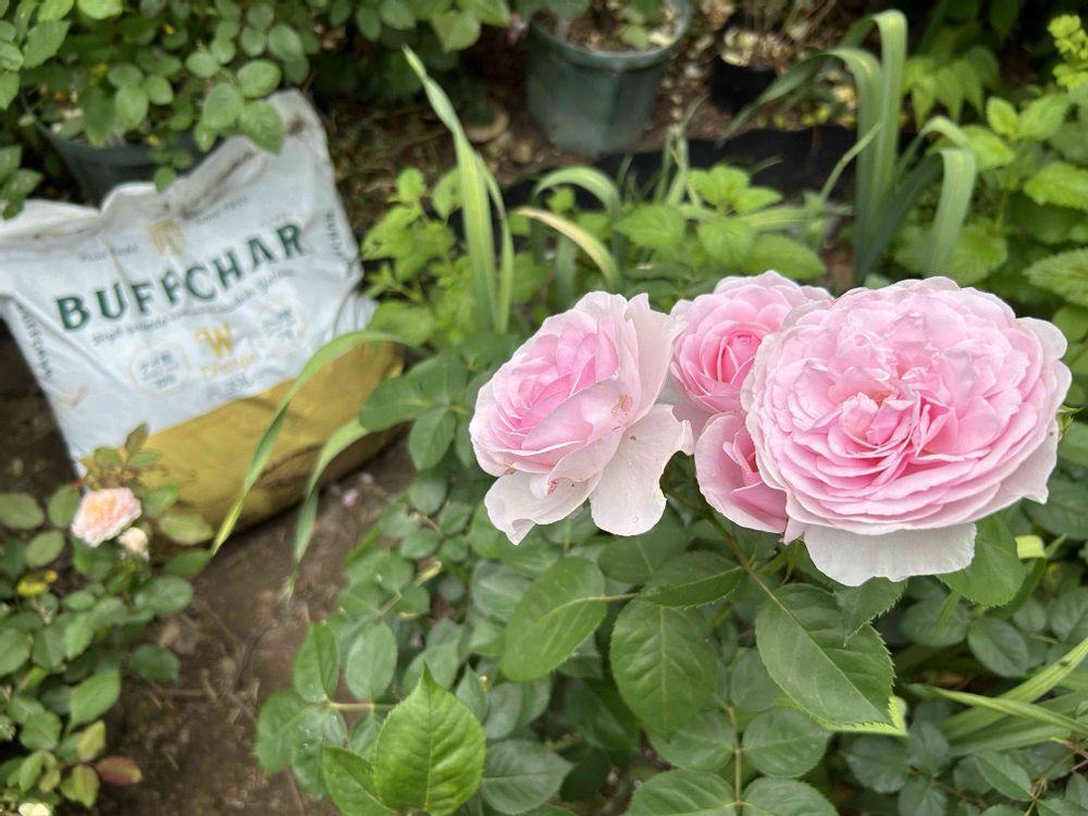 1番花が咲いたら、2番花以降の準備をするために馬の堆肥を施します。と言っても冬に撒いた馬の堆肥がなくなったら追加で撒いているだけです。地植えのバラには年間通して無施肥でこれだけしかやってないです。この馬の堆肥は長年使ってきて信頼できる堆肥です。