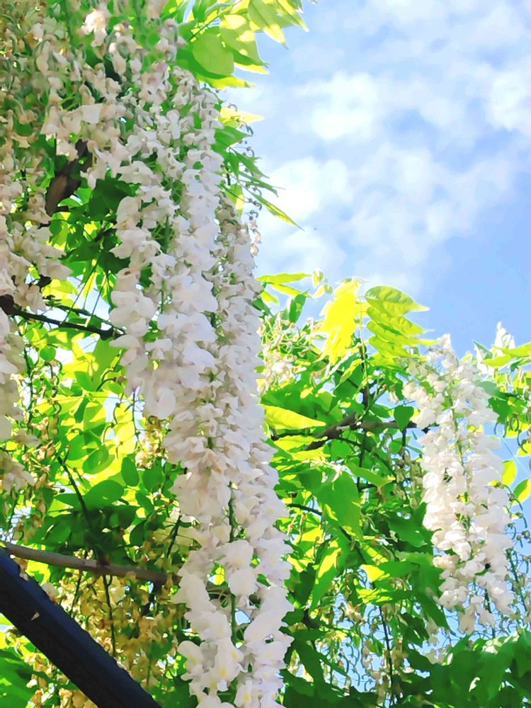 紫の長藤はほぼ枯れてしまって、白い藤だけ少し残って咲いていました🤍