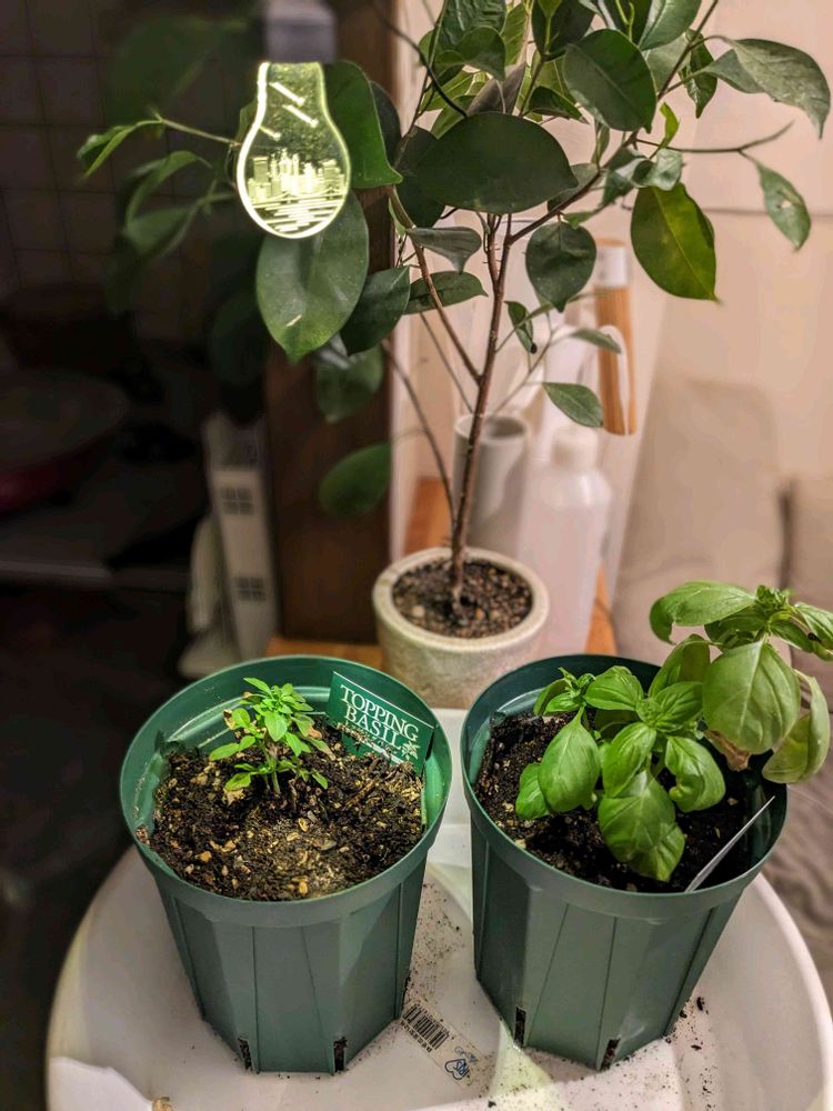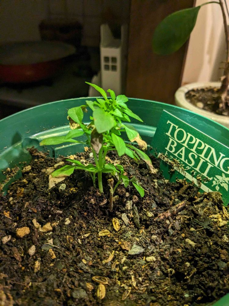 植物ライトを当てつつ、残りのトッピングバジルを避難。残り3本くらい。