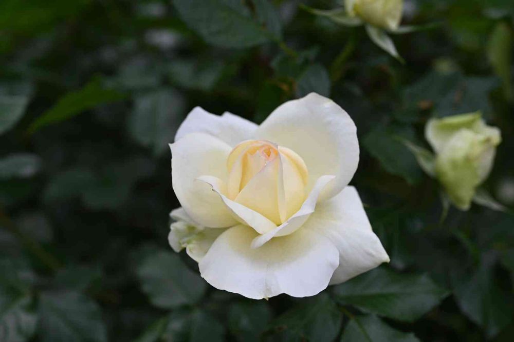 チャイコフスキーという白い薔薇が咲いていました。(少しクリーム色っぽい白です)
