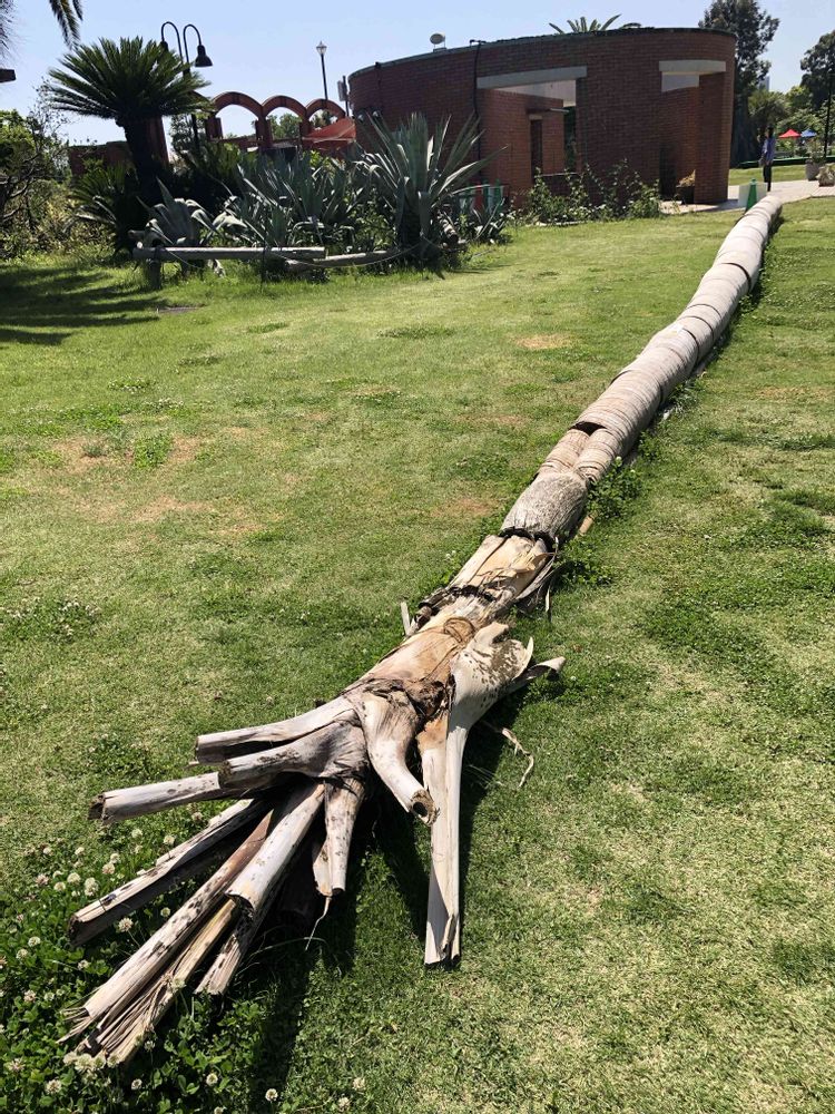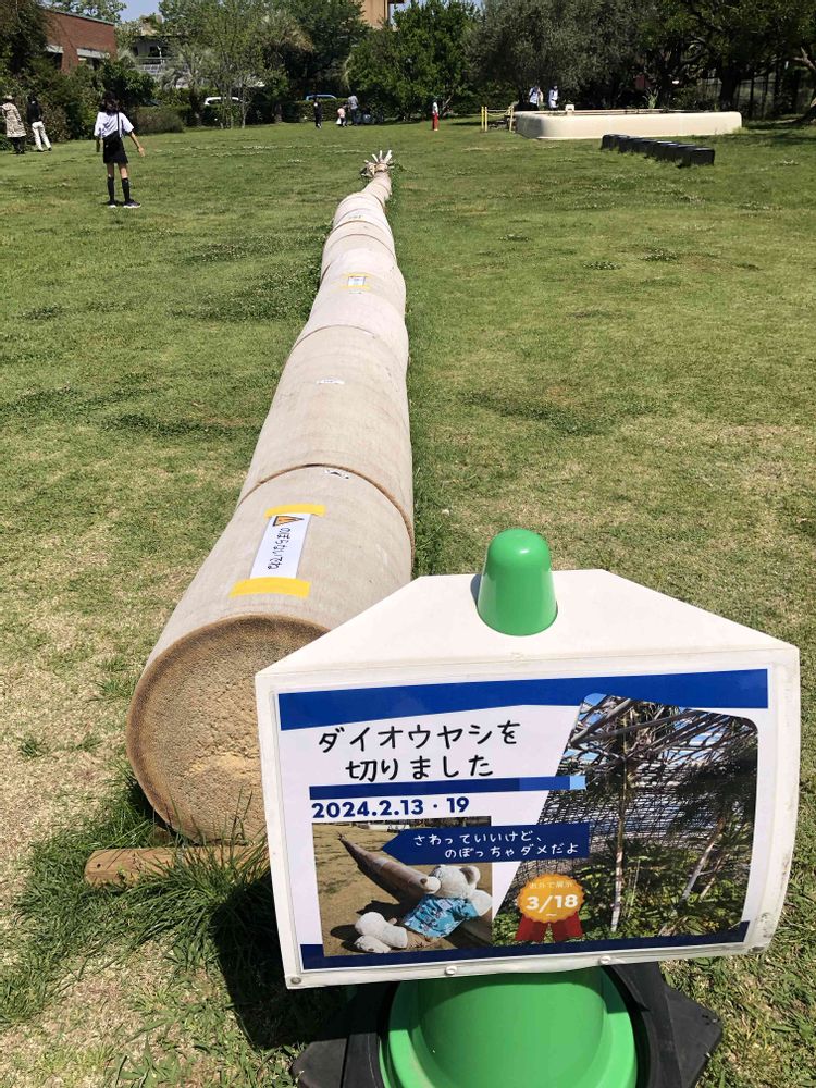 育ってしまったダイオウヤシがカットされて芝生に横たわっていました。