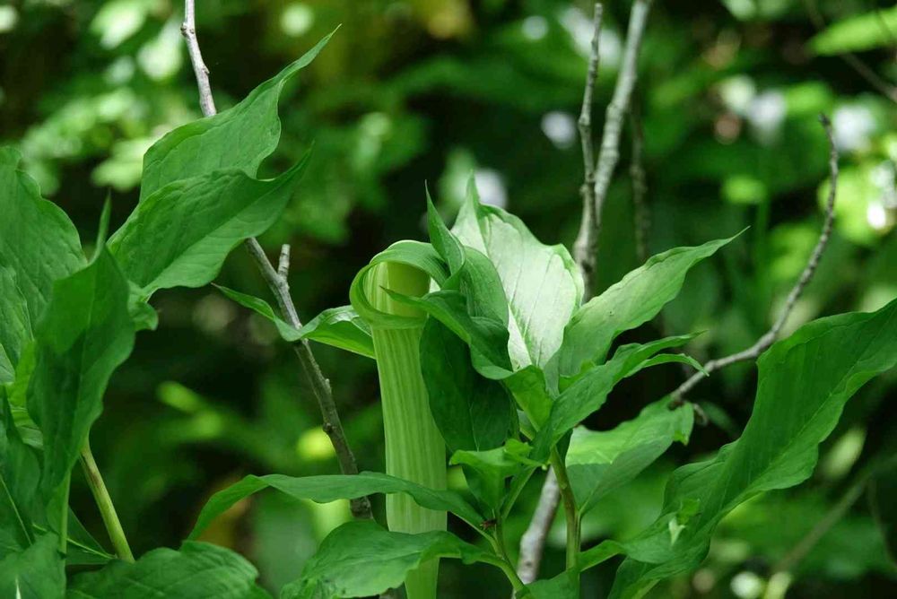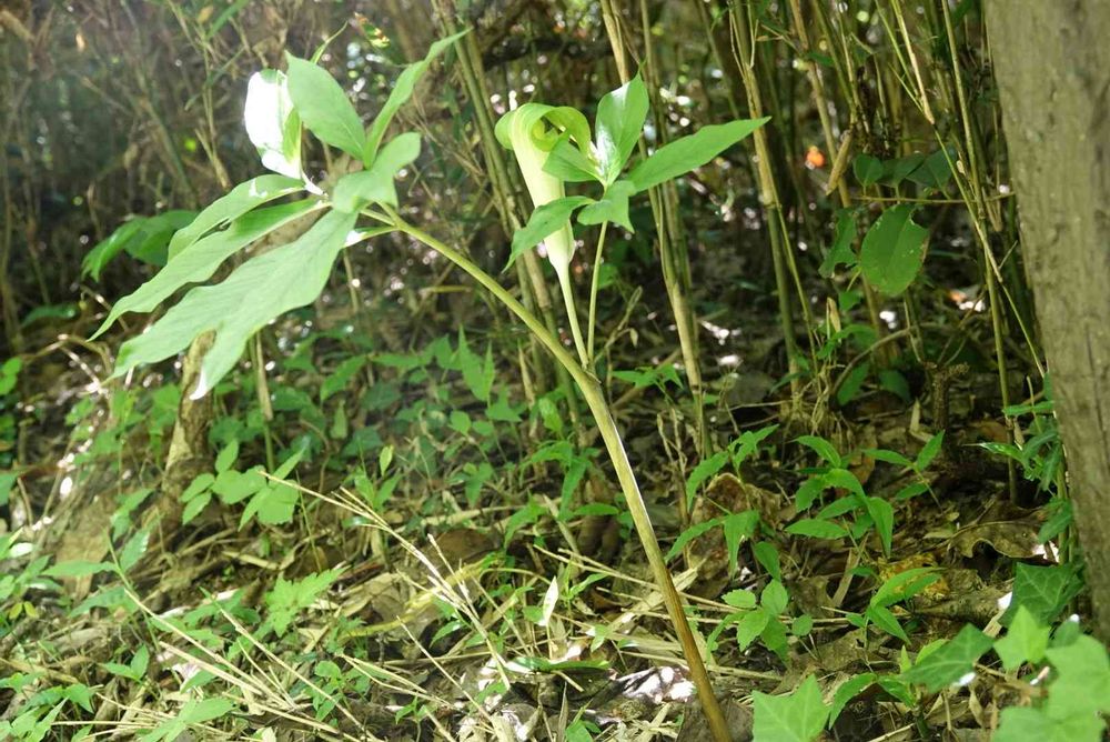 3枚目に辛うじて下の方の茎が見えますがこの柄がマムシに似ている事からマムシグサと呼ばれるようですが、マムシを見たことがないので何とも良く解りません