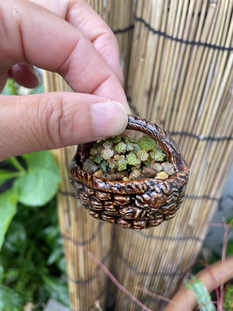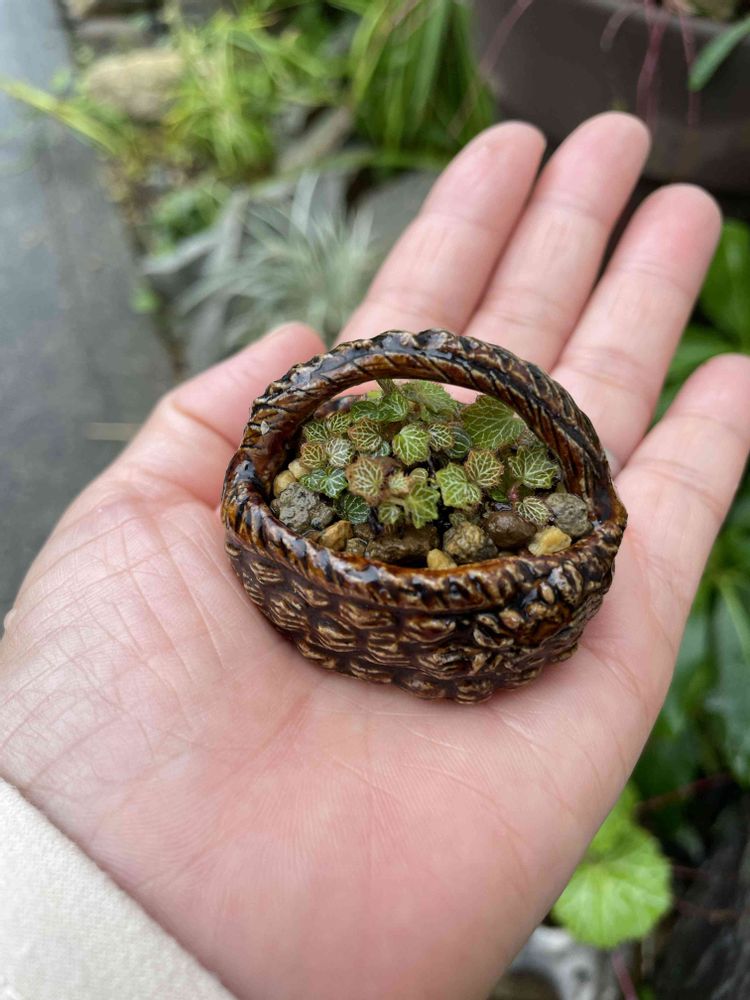 最近、山野草を始めました。旦那は盆栽、私は下草を学び始めました。 自宅で陶芸しています、豆鉢など作っています。の