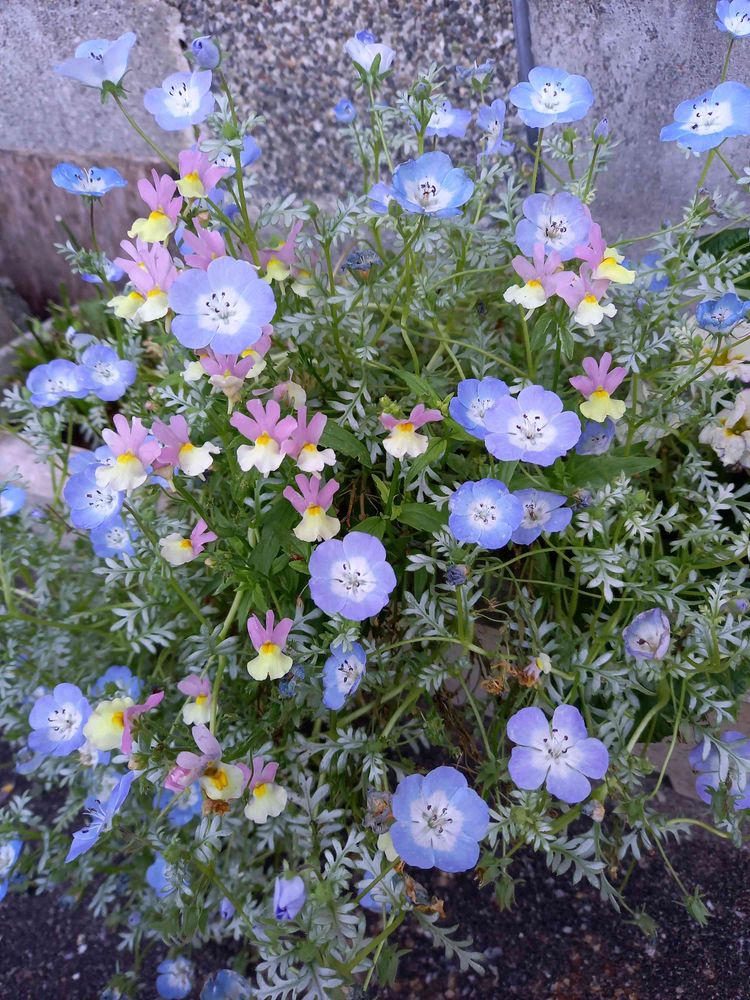 パステルカラーのネモフィラとネメシア💗💙、朝から癒されます💕