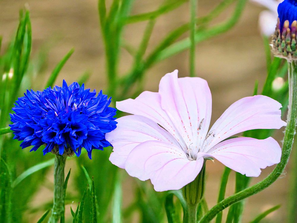 2⃣矢車菊とアグロステンマが並んで咲いてます😊