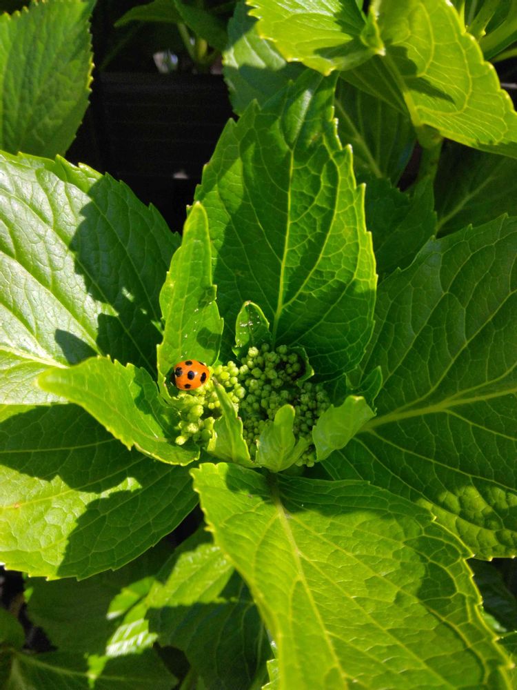 アジサイにてんとう虫、タイミング良かったですね☺️気持ちいい写真ですね❤️