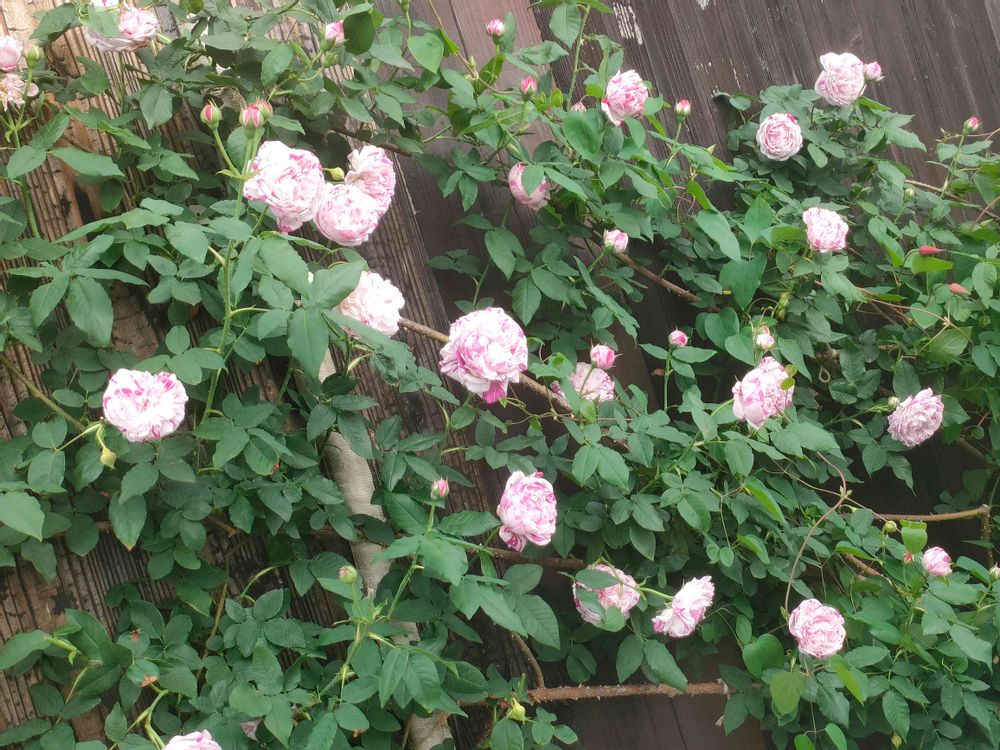 去年は日中ずっと日の当たる場所に植えてたら、花びらがチリヂリになって見る影もない状態でしたが、今年は移動先で綺麗に咲いてくれたバリエガータ・D・ボローニャ。