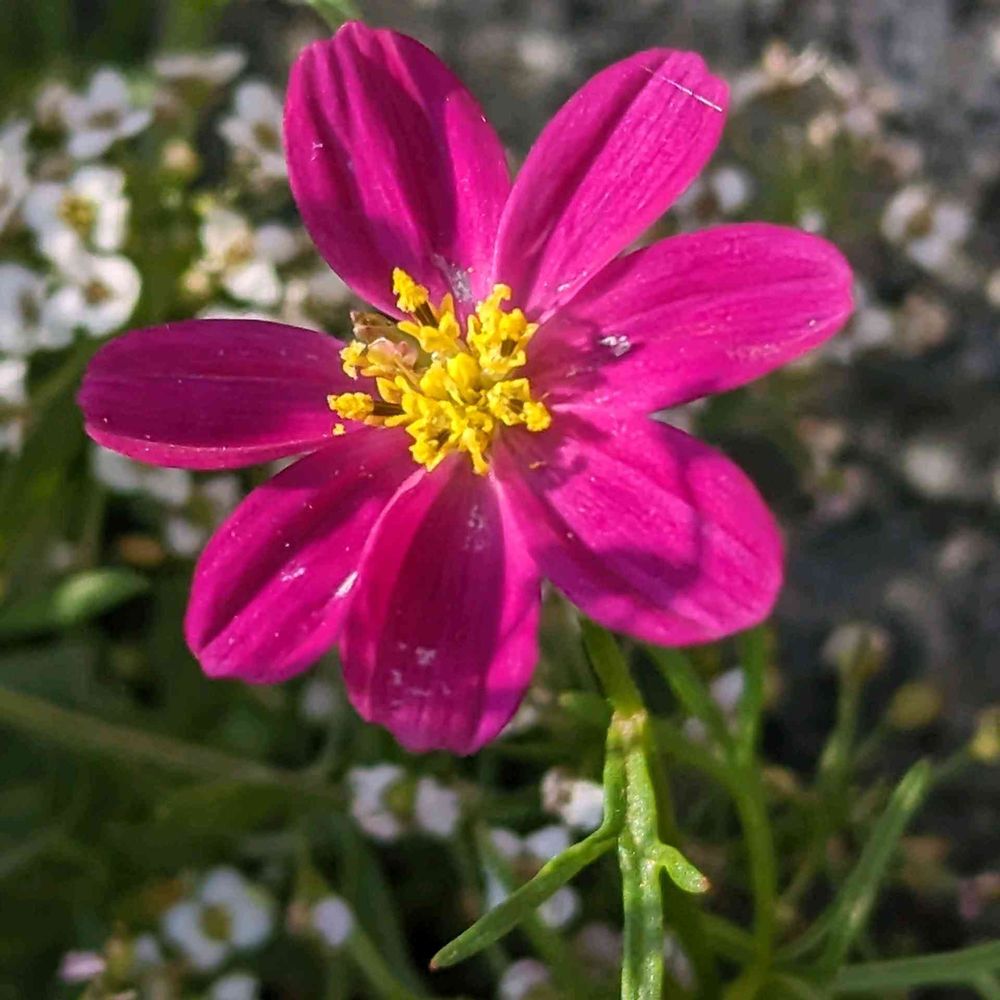 コスモスは、昨年のこぼれ種から数本発芽していますが、5cm程の苗から花が咲きましたよ