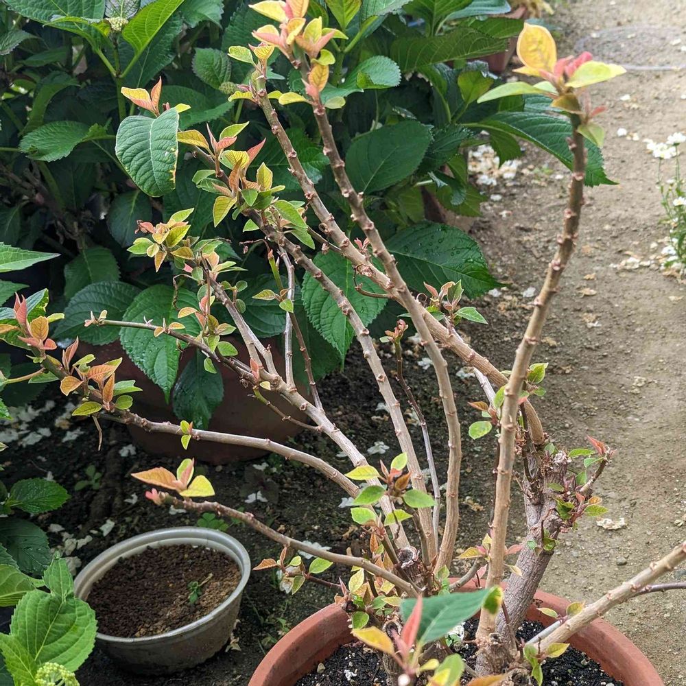 ポインセチアは、今年で何年になるか定かではありませんが、昨年強剪定をしたので、今年は、ここからスタートです