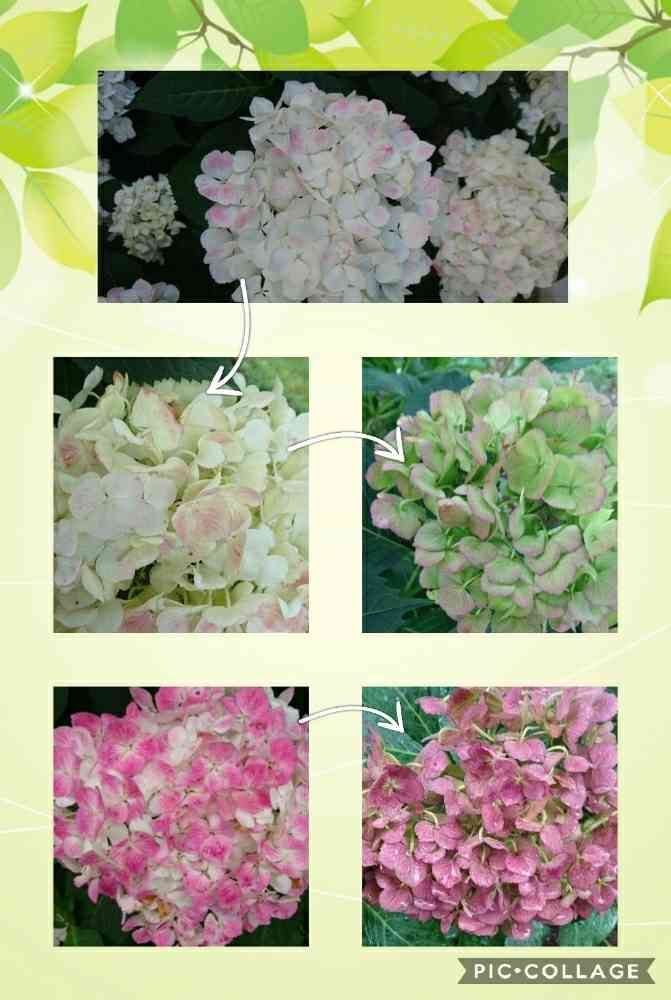 白が多いのも、ピンク色が多いのも、一つの株に咲いていた紫陽花です😮