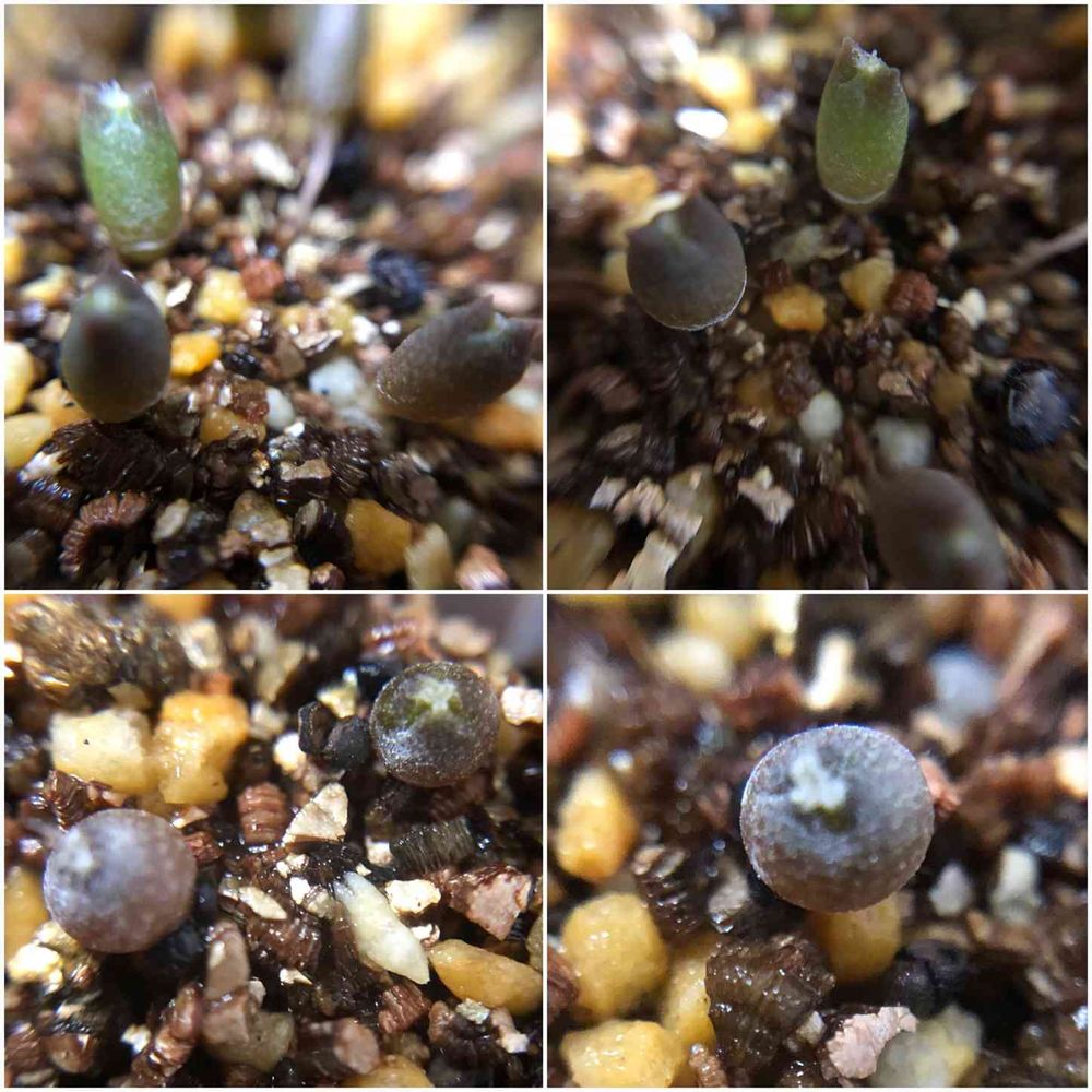 発芽したのはランポー玉が約半分で28粒、緋花玉が約1/4で13粒、月影丸はどうやら種ではなかったみたいで発芽せずでした!ん〜残念!😥