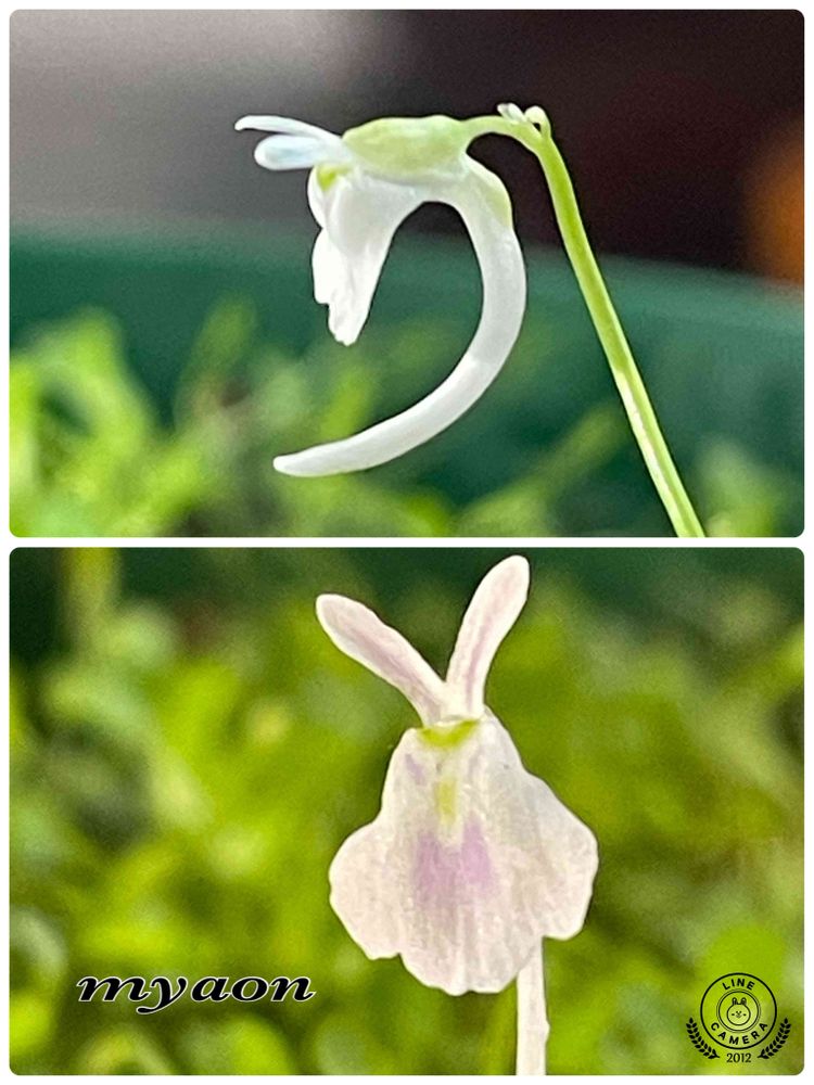 1枚目 : ウサギゴケ(Utricularia sandersonii)ポツリポツリと咲いてくれてる。花茎がキューッと急に伸びてくるꉂ🤣w𐤔