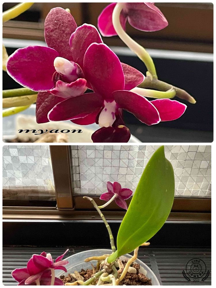 小さなお花で夜見るともっと黒っぽく見える。管理が悪くて一葉らんみたいな状態。お花をカット✂️して体調を整えよう。