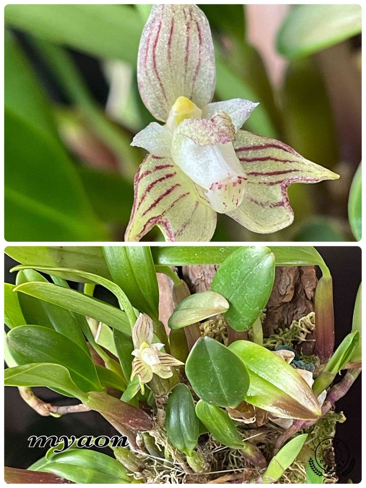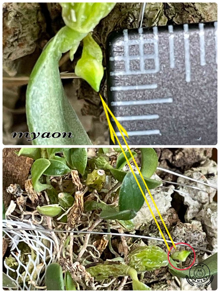 3枚目 : ムギラン(麦蘭、Bulbophyllum inconspicuum)花芽発見したけれどお年頃のお目目( Ꙭ)⸝ෆにはチト辛い大きさ。