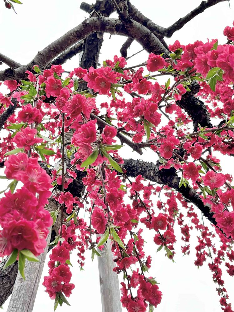 垂れ花桃🍑、上から降って来るような迫力と美しさを感じます💕すご〜く綺麗ですね😍