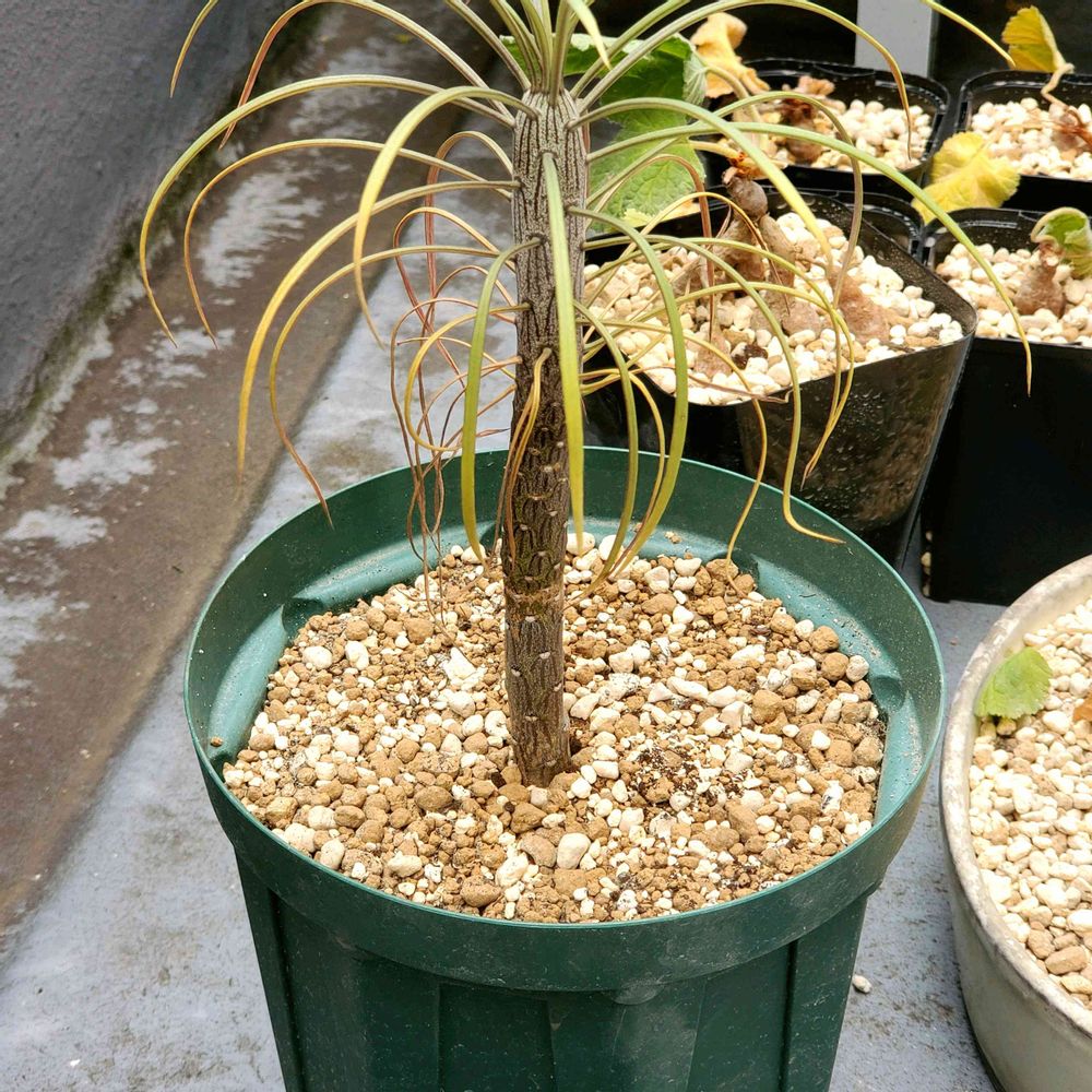 これから成長期なので、思いきって三倍の鉢増しにして見守ります。