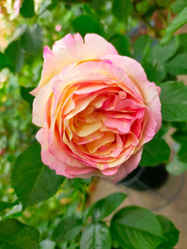 ペッシュボンボンとは、お目が高い❗我が家の中では花がたくさん咲く方ではないのですが、1輪の美しさドッシリ感は、ピカイチの薔薇です💖