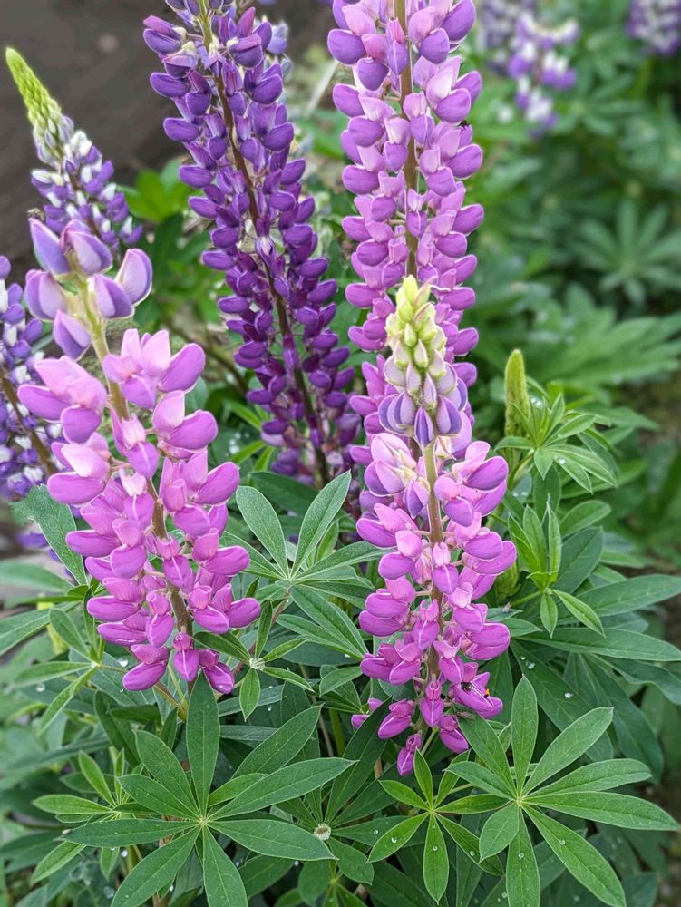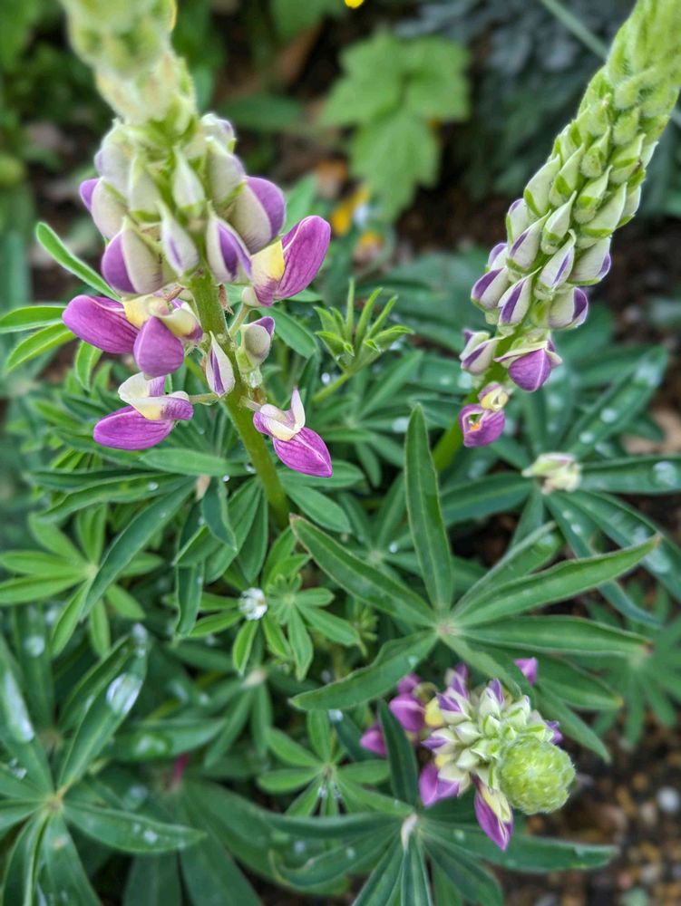 ルピナスの葉の雫が可愛いくて花も綺麗に映ります✨🩵💚