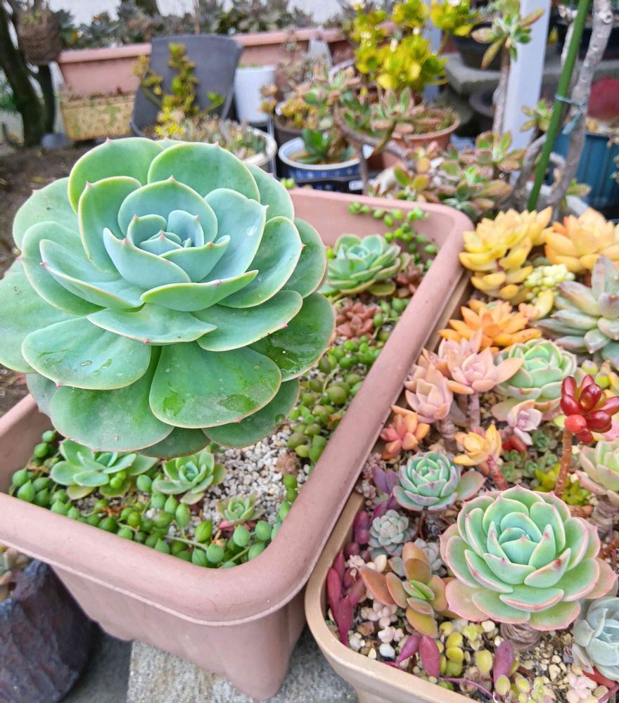 多肉との出会いは娘からの プレゼント🎁✨🌱✨ 少しずつ増えてきたので寄せ植え にも挑戦中💪 育てる楽しさ(ちょっと大変💦) 作る楽しさ💓 毎日、癒されてます😌