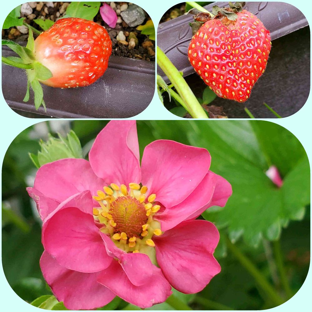 今晩は🎶赤花イチゴ🍓です味は少しは酸っぱかったです😅