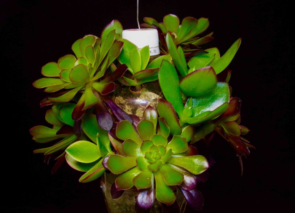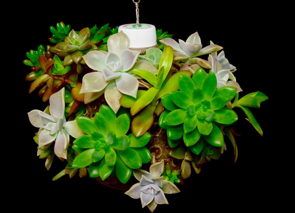 多肉ペットボトル仕立て ①②朧月 春萌 火祭り 乙女ごころ ③④黒法師 金のなる木