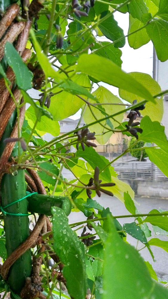 我が家も付いています。今年もしっかり人工受粉をしました😅。我が家の近所にはアケビの木が無いため、人工受粉は必須みたいです。