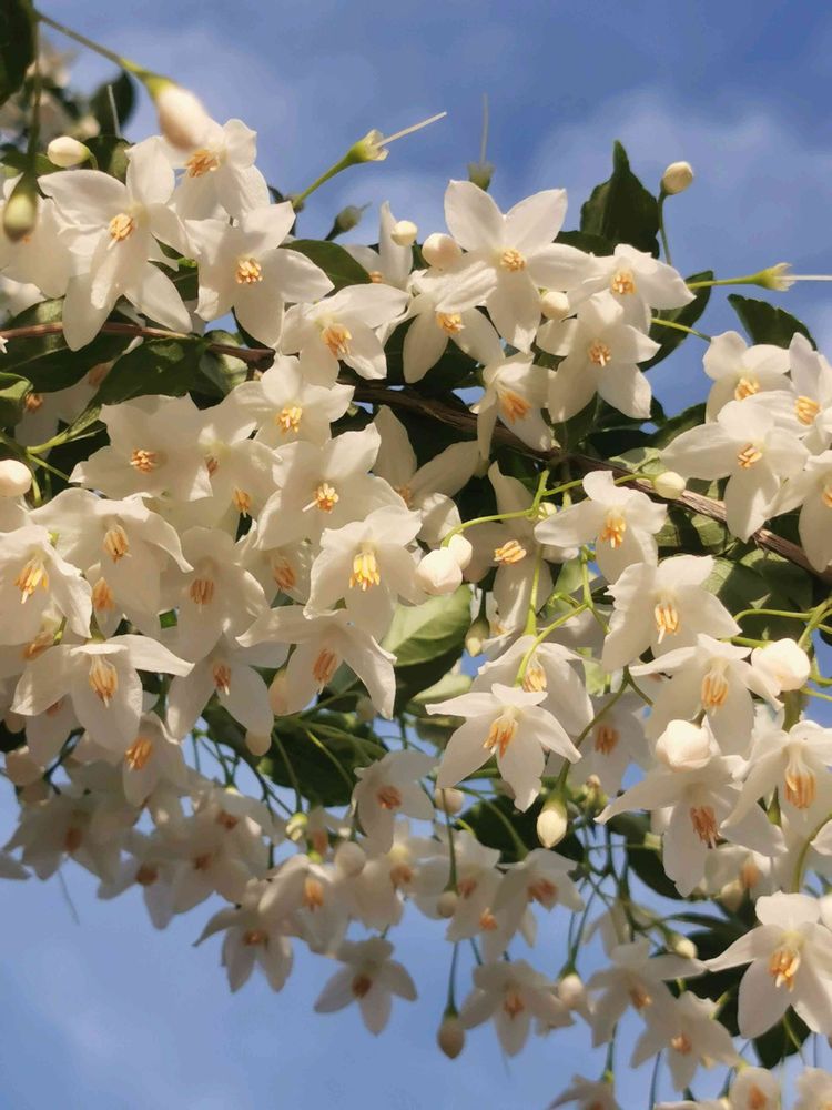 通り沿いの老人ホームの庭でした。同じ庭にカラタネオガタマの花がこちらもたくさんの花がついていて、甘い香りに酔いました。😌😍