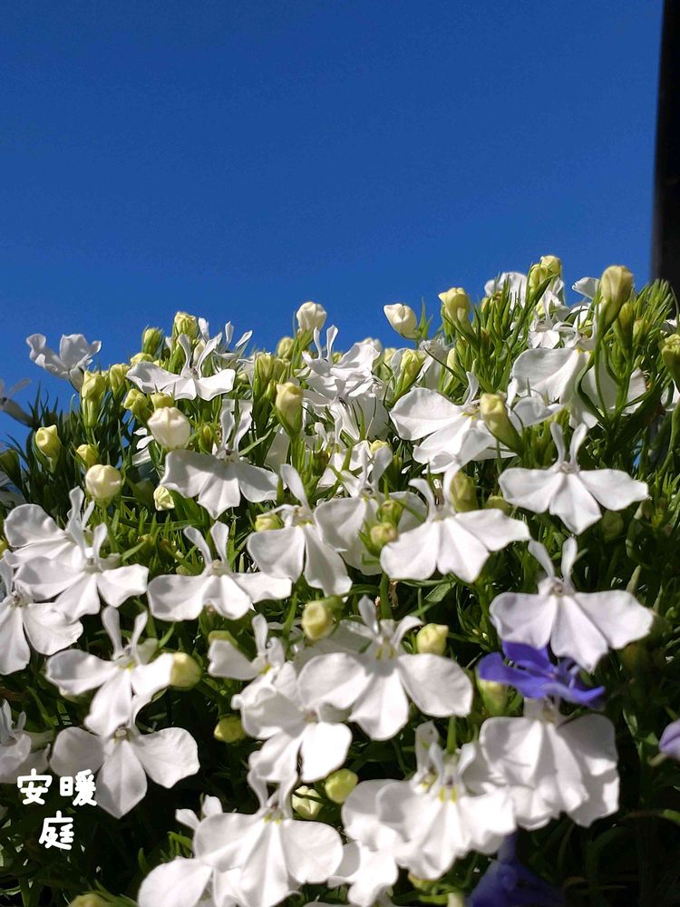 深い青に真っ白なロベリアが輝いて見えます😄✨