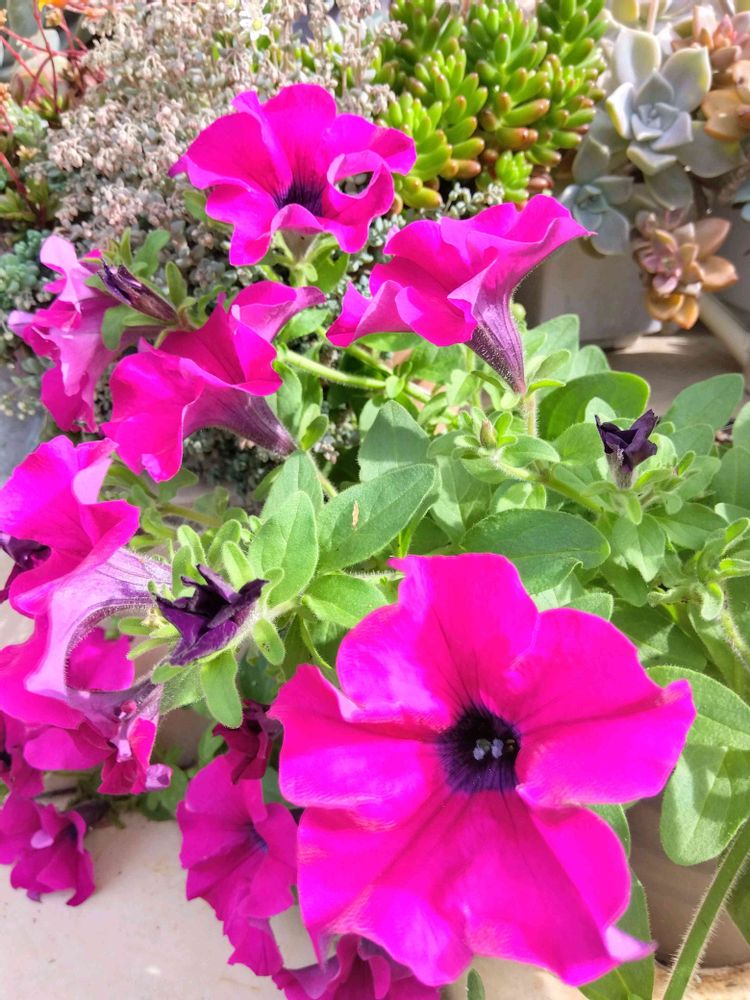 サフィニア、ルビーネックレス共に、たっぷりの雨水を受けて、元気いっぱいです🌱