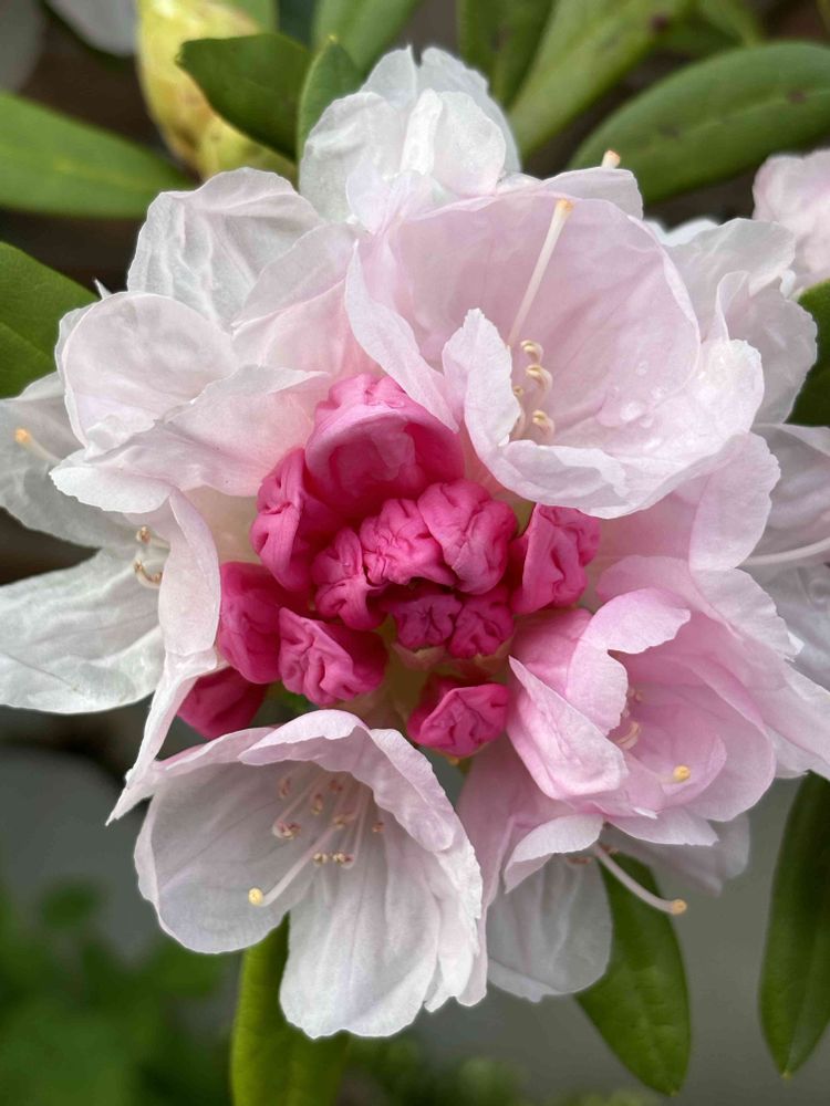 朝の散歩で綺麗に咲いている石楠花に出会いました。