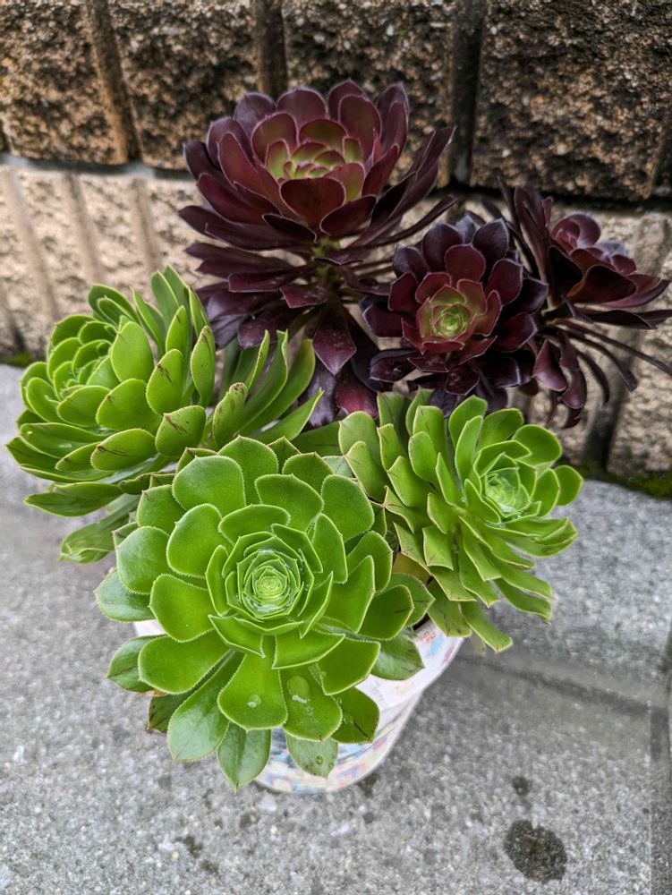 雨に濡れたアエオニウムが綺麗でパシャリ📸