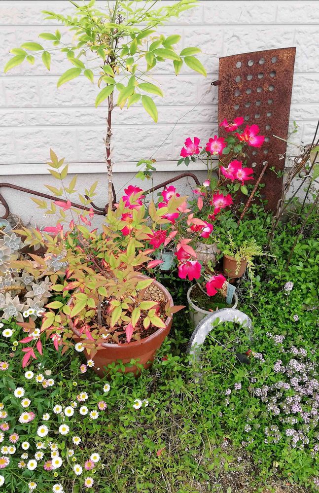 玄関外回り私んちにしては珍しく😅 花盛り💚