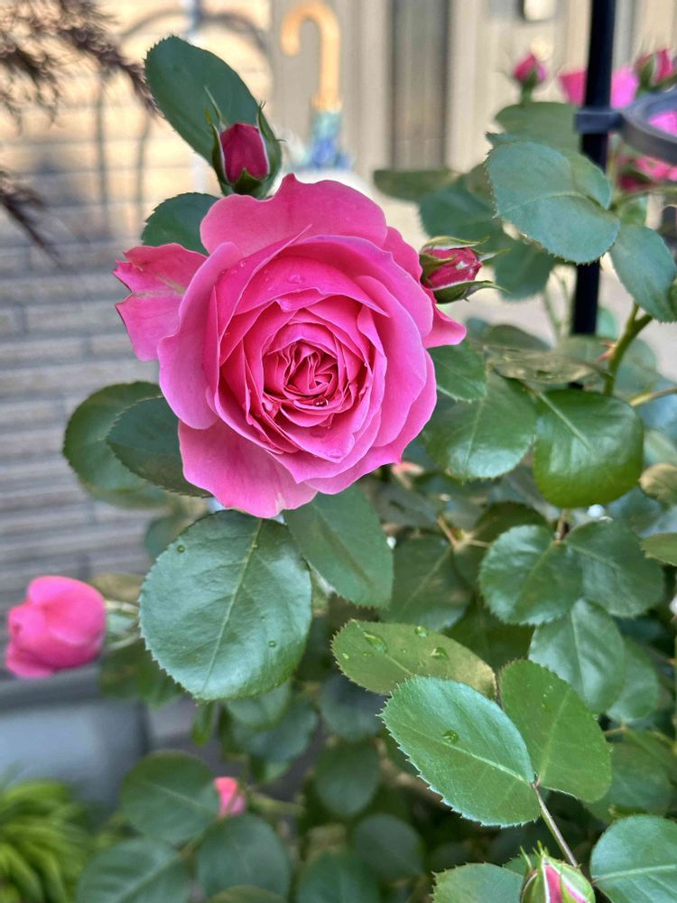 バラ レオナルド・ダ・ヴィンチが開花しました。昨日の雨にも負けず、花はしっかりと咲いてくれています。