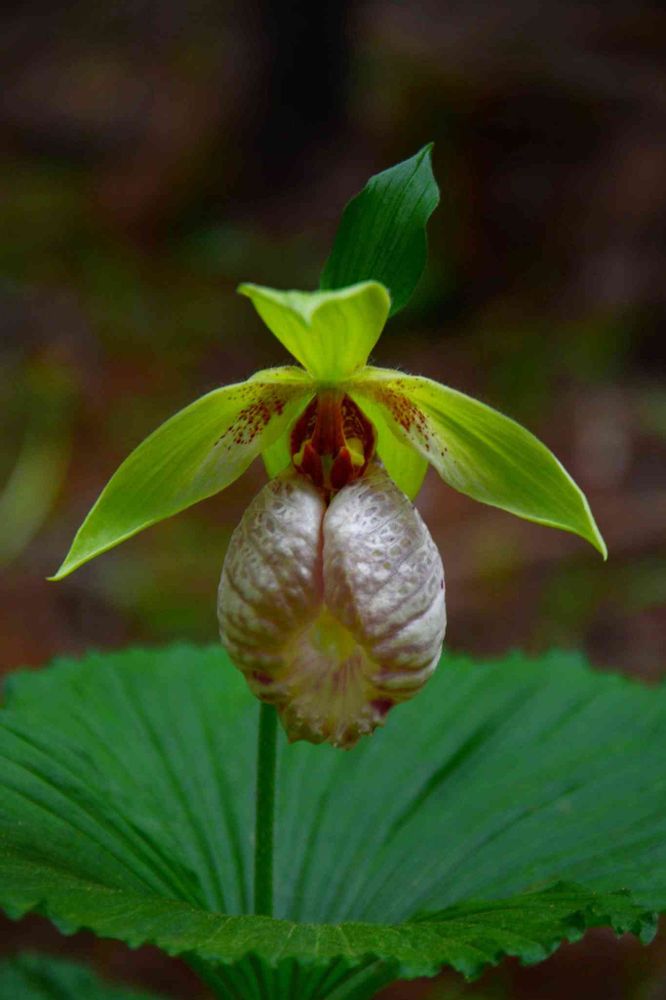 クマガイソウ咲いています。日本産野生ランの中では最も花が大きい種の一つで、とかく盗掘される蘭です。自生のものを見るのはなかなか難しくなってきています。全国的に絶滅危惧種指定を受けています。