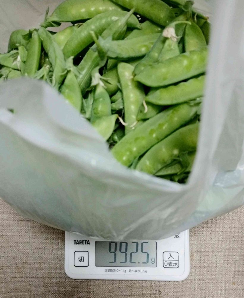 今朝、家庭菜園でスナップエンドウを収穫しました。