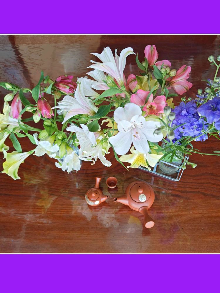 お母様はお茶もお好きでしたか⁉️ 可愛い茶器ですね😍 好きなお花とお茶を備えて貰って、お母様、お喜びですね😊